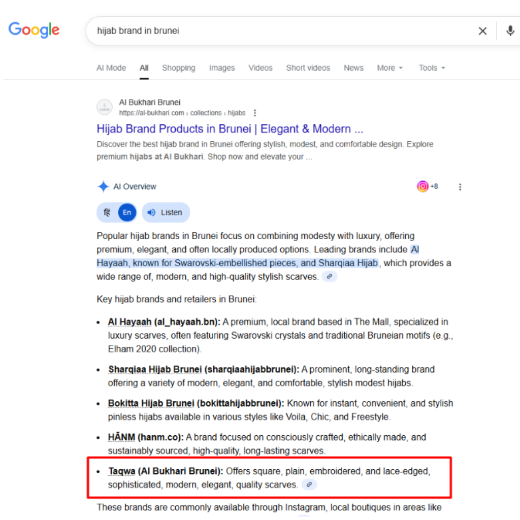 - Website now appearing in AI Overview, and AI Mode
