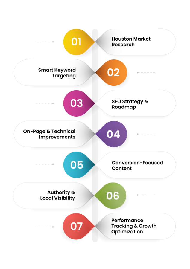 Our local SEO services in Houston ensure your Google Business Profile is fully optimized with accurate details, keywords, and local signals to improve map and local search visibility.